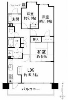 | 間取り/間取り詳細 | 3LDK / 洋室7.1畳 / 洋室5畳 / 和室6畳 / LDK15.6畳 | ||