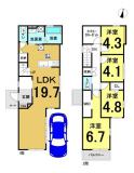 | ■阪急伊丹線「新伊丹」駅徒歩10分■駐車スペース1台分(車種による)■大型ファミリークローゼットあり! |